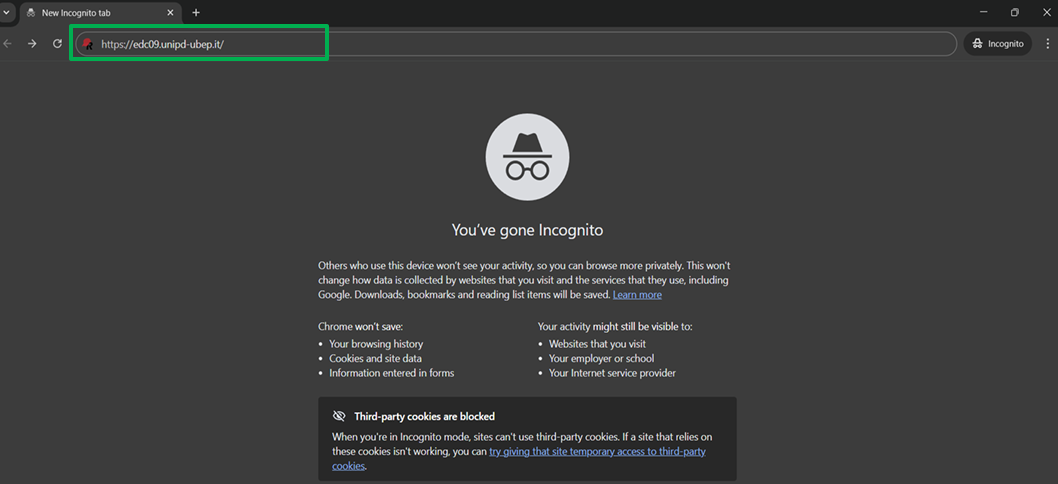 Once you open the platform in a private / incognito browser window (your page might look, similar to the example one below depending on your browser).
