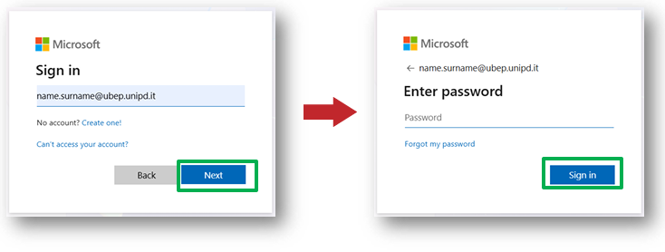 Username (name.surname@ubep.unipd.it) .Click Next.