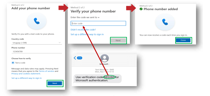 - You will now see a window saying: “Phone numberadded”. Click Done.