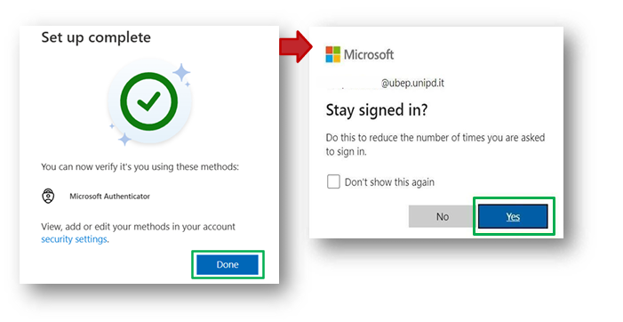 - Click Done. A security confirmation screen will appear “Stay signed in?”