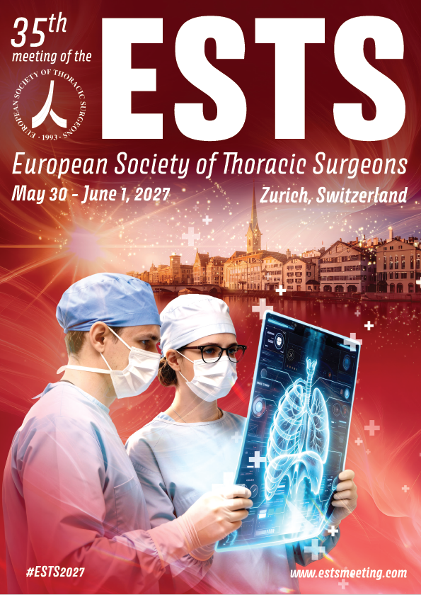Home EventsCalendar 35th European Conference on General Thoracic Surgery, Zurich, Switzerland 35th European Conference on General Thoracic Surgery, Zurich, Switzerland Download Event to Calendar Event The European Society of Thoracic Surgeons (ESTS) is pleased to announce that the 35th ESTS Annual Conference will take place in Zurich, Switzerland, from 30 May - 1 June 2027. Join us for three days of cutting‑edge science, hands‑on training, and networking with colleagues from around the world. Abstract submissions and registration will open soon. Stay tuned for programme highlights and further details. This event is awaiting approval for CME View other Events