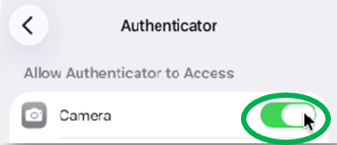 - iPhone: Settings → Apps →Microsoft Authenticator → Camera → Allow