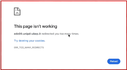 Description: The REDCap page does not open and displays a message related to browser cache or session issues.