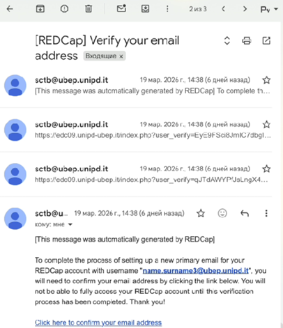 Description: You receive more than one REDCap confirmation email.